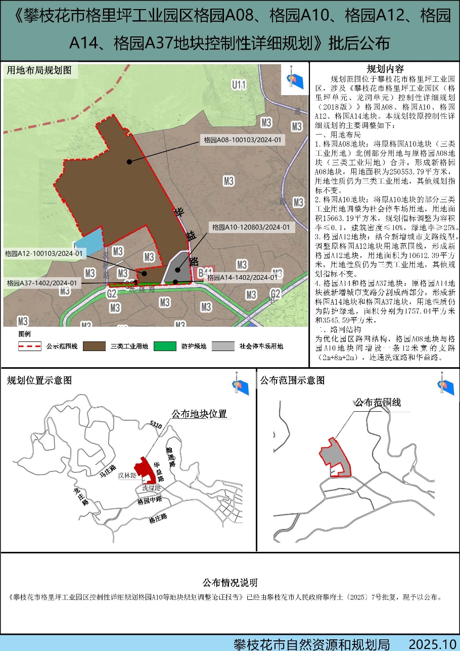 《攀枝花市格里坪工业园区格园A08、格园A10、格园A12、格园A14、格园A37地块控制性详细规划》批后公布