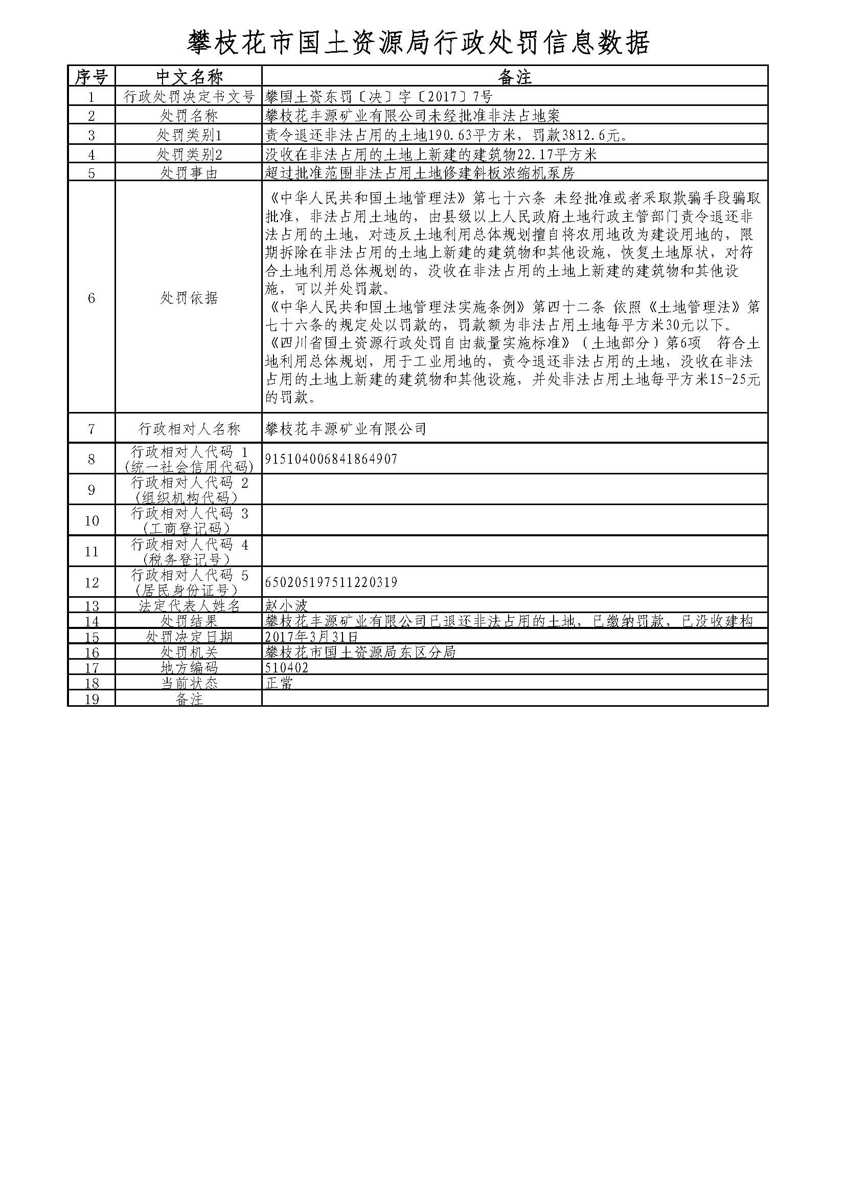 攀枝花丰源矿业有限公司未经批准非法占地案