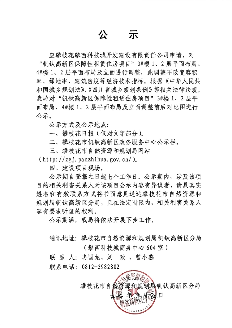 “钒钛高新区保障性租赁住房项目”3#楼1、2层平面布局、4#楼1、2层平面布局及立面调整前后对比图公示