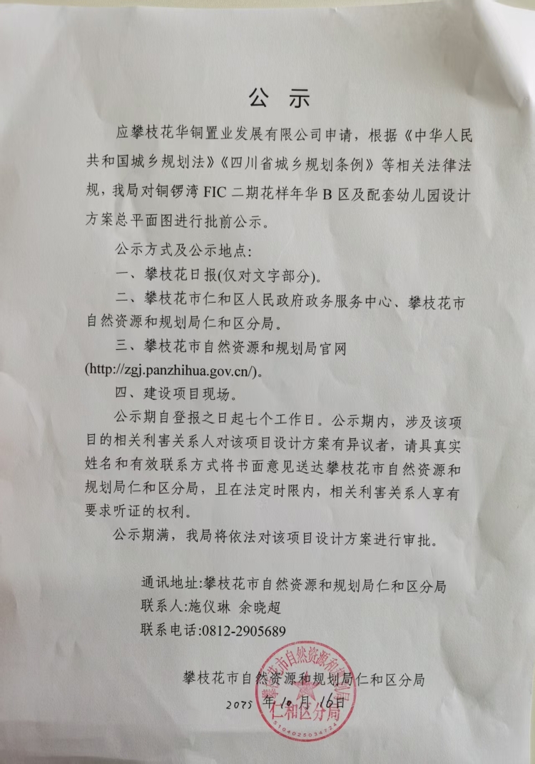 铜锣湾FIC二期花样年华B区及配建幼儿园设计方案总平面图批前公示