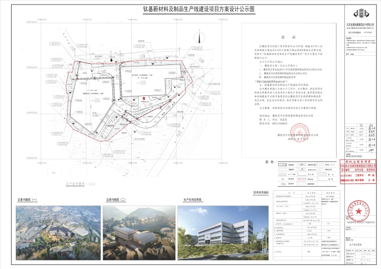 “钛基新材料及制品生产线建设项目”设计方案总平面 图公示