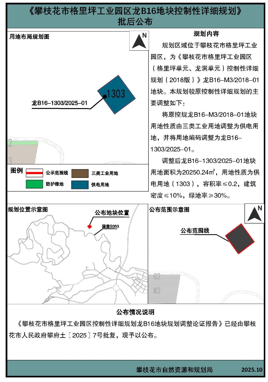 《攀枝花市格里坪工业园区龙B16地块控制性详细规划》批后公布