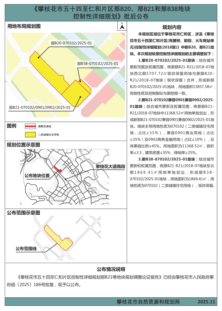 《攀枝花市五十四至仁和片区那B20、那B21和那B38地块控制性详细规划》批后公布