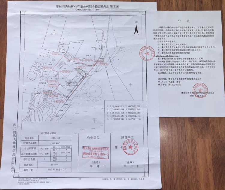 “攀枝花杰迪矿业有限公司综合楼建设项目”竣工图按现状规划核实批前公示