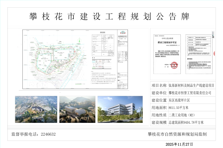 钛基新材料及制品生产线建设项目工程规划许可批后公布