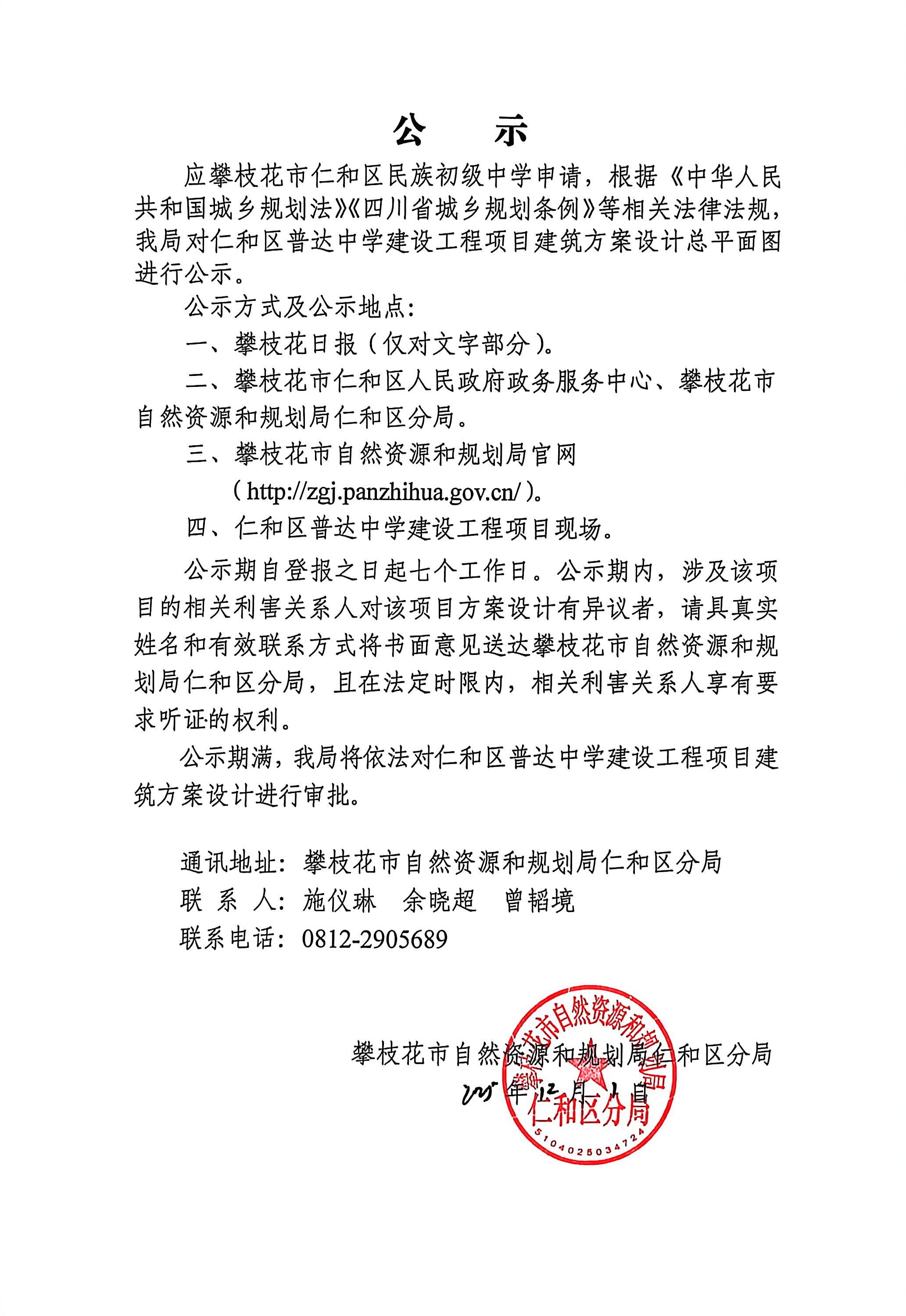 仁和区普达中学建设工程项目建筑方案设计总平面图公示