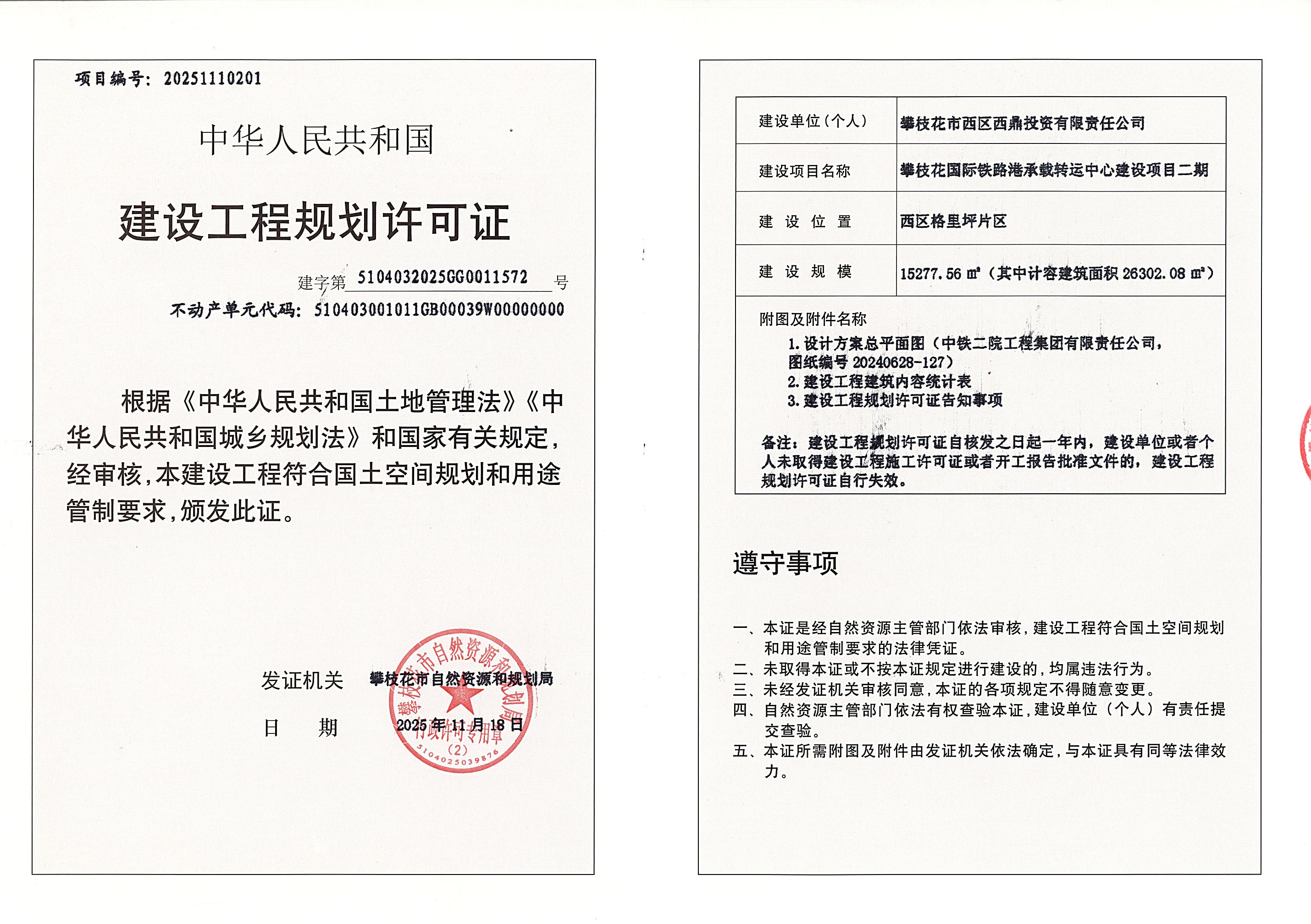 攀枝花国际铁路港承载转运中心建设项目二期建设工程规划许可及方案设计总平面图批后公布