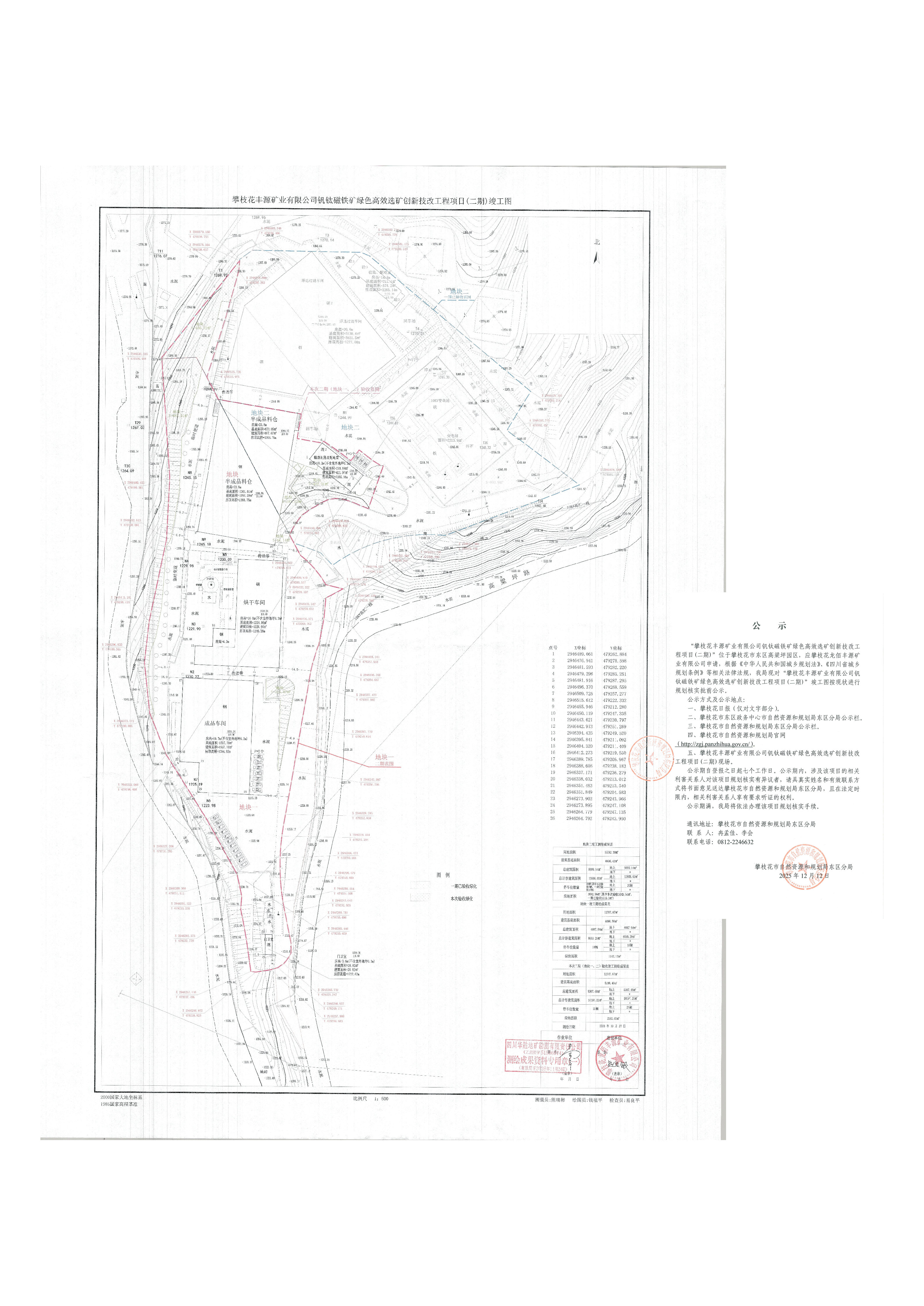 “攀枝花丰源矿业有限公司钒钛磁铁矿绿色高效选矿创新技改工程项目(二期)”竣工图按现状规划核实批前公示