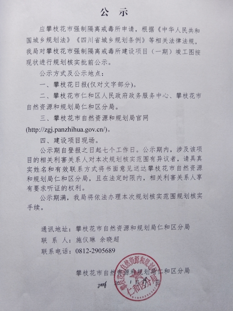 攀枝花市强制隔离戒毒所建设项目(一期)竣工图按现状规划核实批前公示