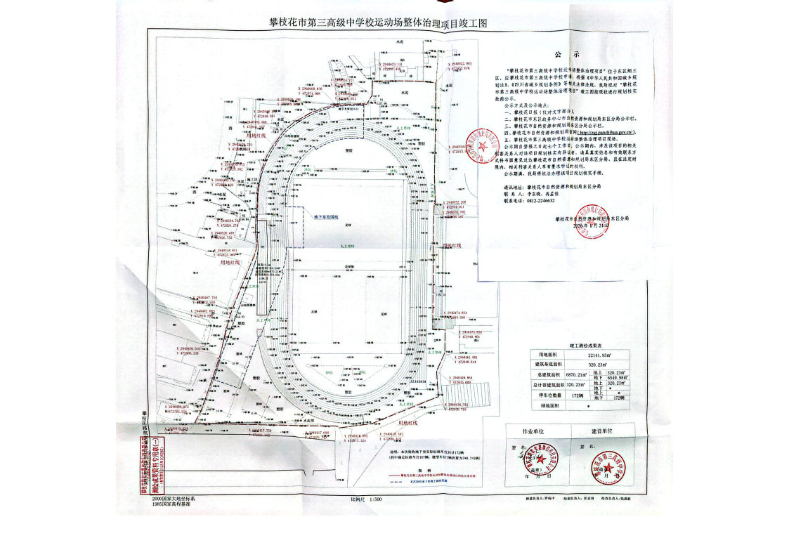 “攀枝花市第三高级中学校运动场整体治理项目”竣工图按现状规划核实批前公示