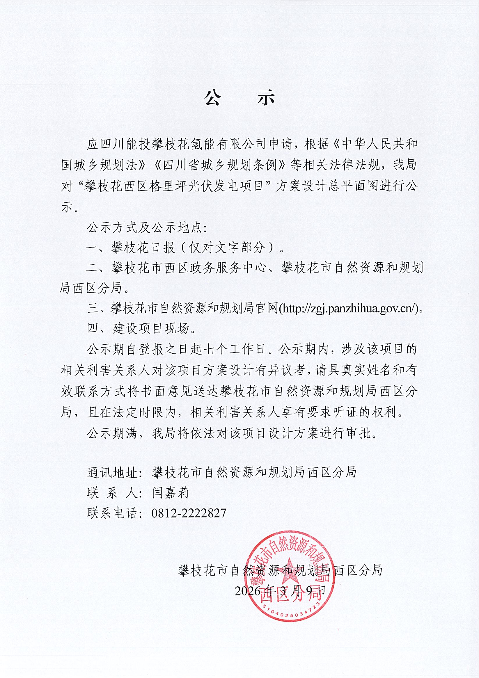 “攀枝花西区格里坪光伏发电项目(110kV升压站)”方案设计总平面图公示