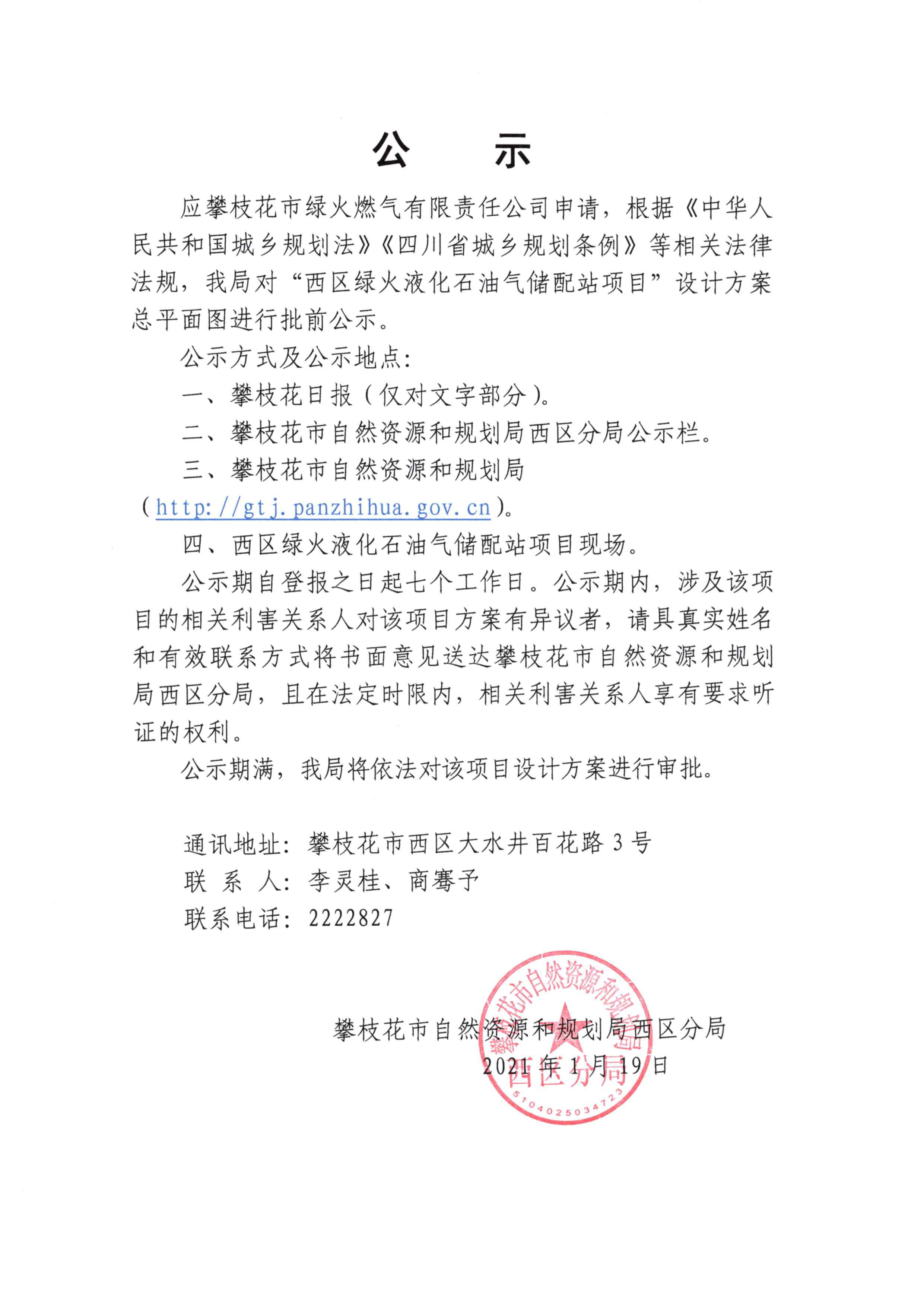 “西区绿火液化石油气储配站项目”设计方案总平面图批前公示