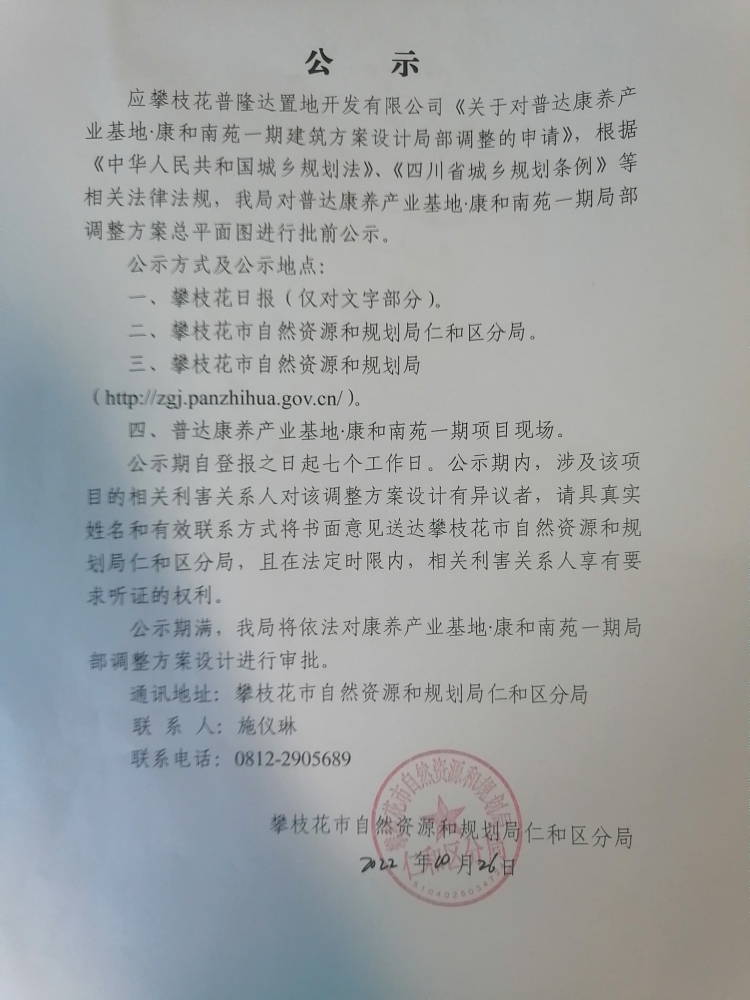 普达康养产业基地·康和南苑一期局部调整方案总平面图批前公示