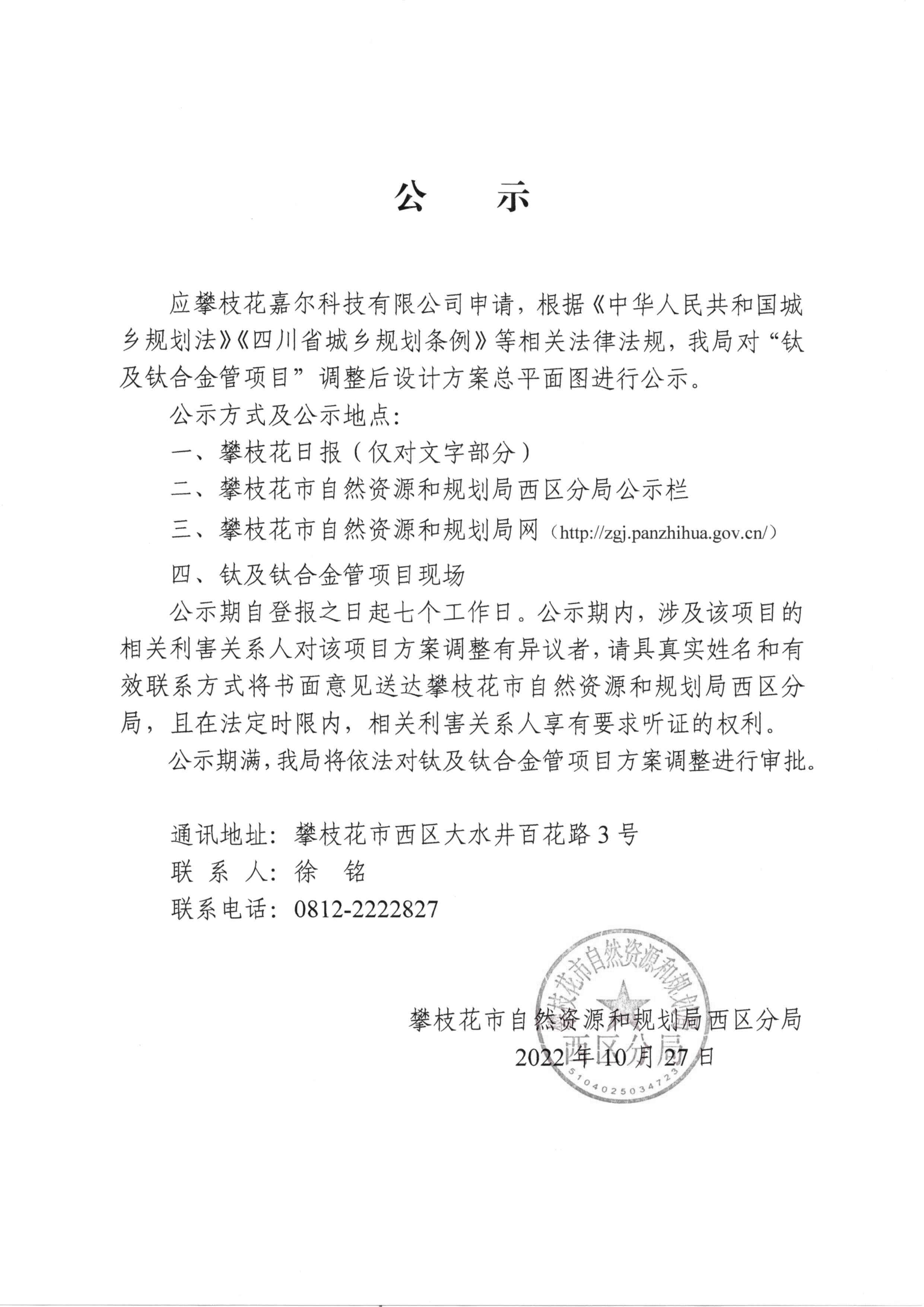 “钛及钛合金管项目”调整后设计方案总平面图公示