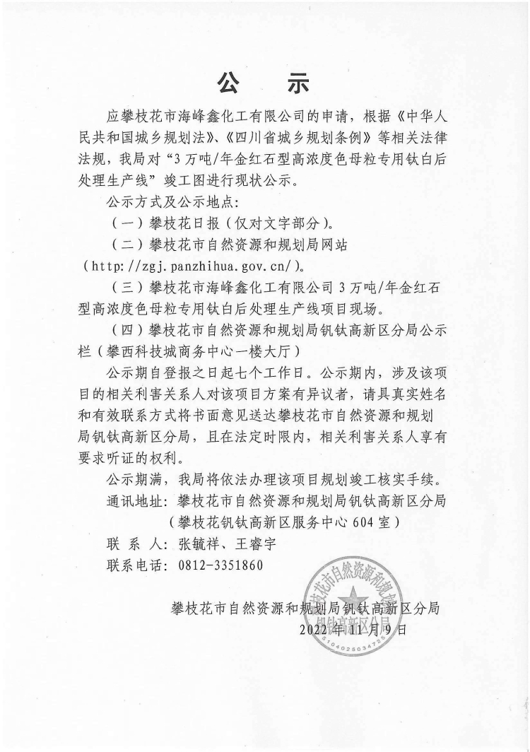 “3万吨/年金红石型高浓度色母粒专用钛白后处理生产线”竣工图现状公示