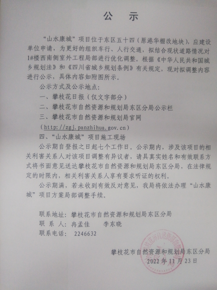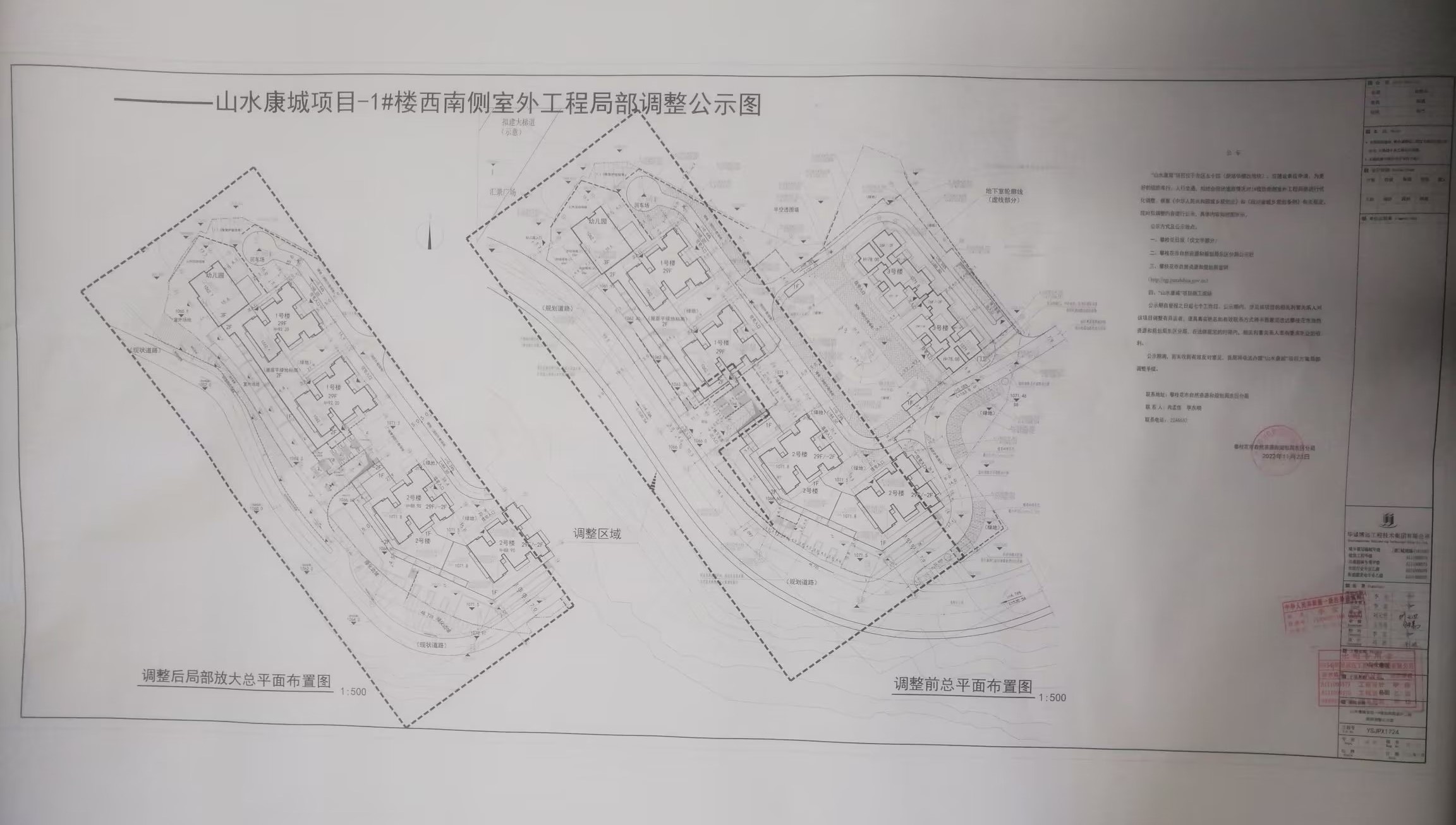 “山水康城”项目1#楼西南侧室外工程局部调整公示