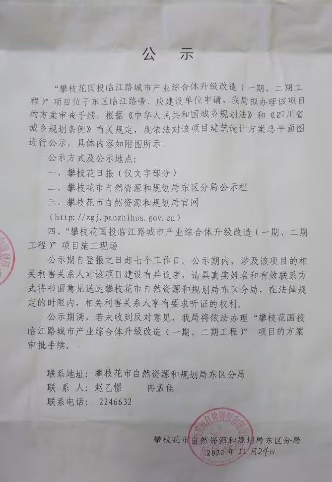 “攀枝花国投临江路城市产业综合体升级改造(一期、二期工程)”项目建筑设计方案总平面图公示