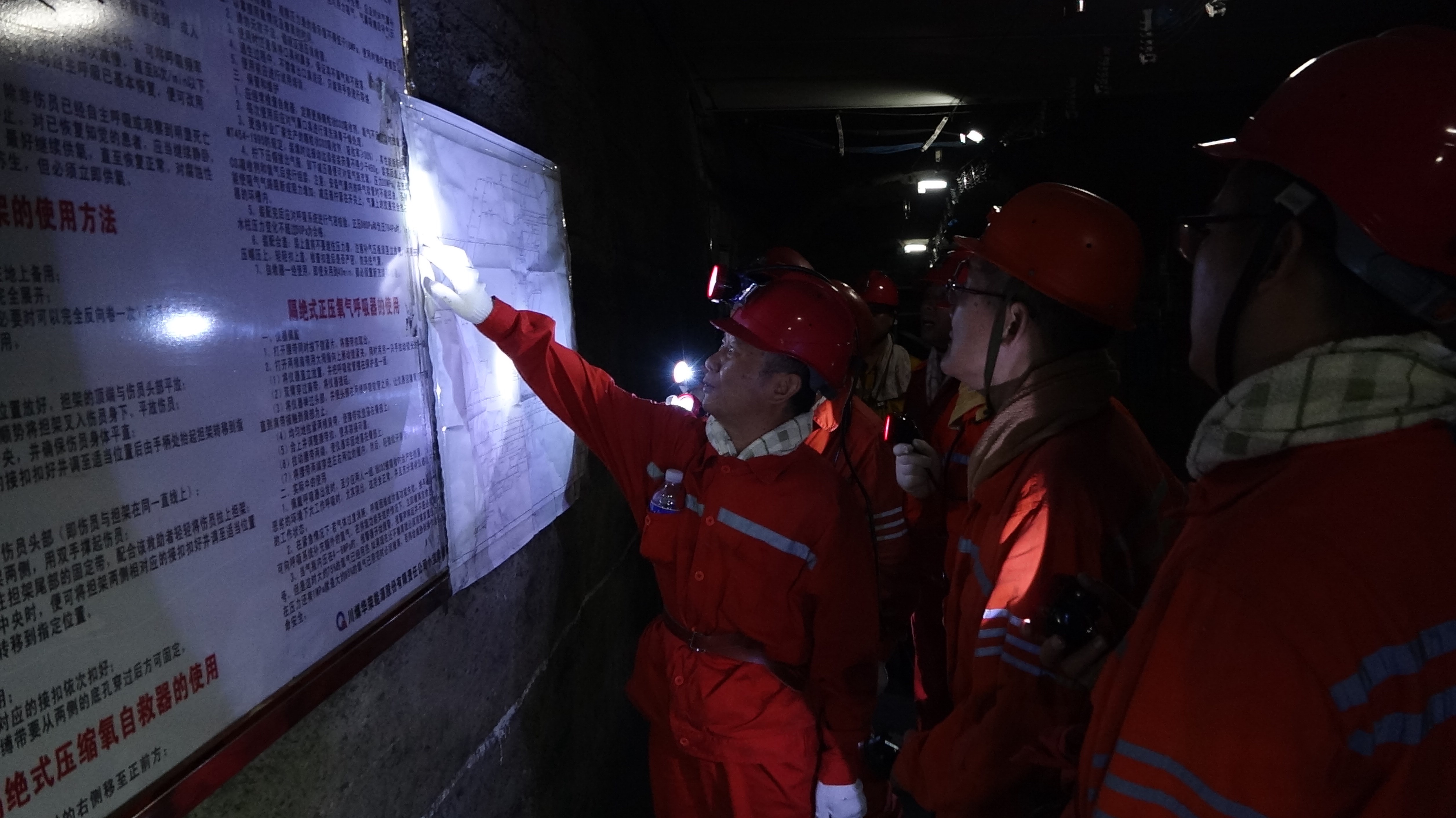 何光华副局长一行首先到小宝鼎煤矿井下实地检查了矿山排水系统、避难洞室、井下安全文化等建设工作。在会议室,仔细查看了矿山采矿工程布置图,听取了煤矿负责人对矿山生产建设的详细汇报。目前,矿山生产正常,未发现存在违法违规生产的情况。