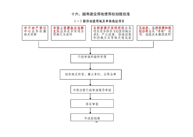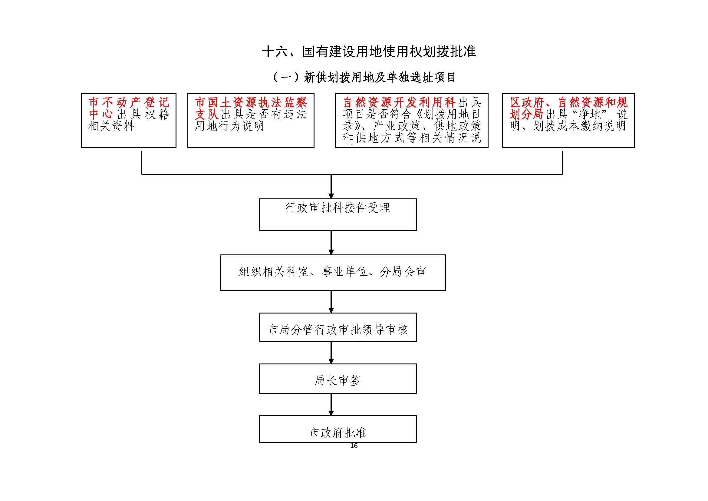 接件登记、受理→组织会审→分管局长审核→局长审签→报市政府批准→划拨用地公示(10天)→窗口领取《国有建设用地划拨决定书》、《用地批复》和《建设用地批准书》